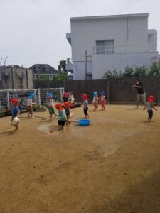 熱中症にならないように気を付けながら、お外遊びを楽しんでいきます。