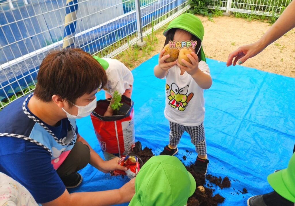 06/27/2024 / 最終更新日時 : 02/01/2025 ソーレ三軒屋園 ブログ担当者 三軒屋園 2024/6/27🥔じゃがいもの収穫🥔 梅雨らしいお天気が続く中、雨の合間をみて【じゃがいもの収穫💚】を楽しみました😊土の中からじゃがいもが出てくると、嬉しい歓声をあげていた子どもたちでした💖土の匂いを嗅いだり感触あそびを楽しみました😊