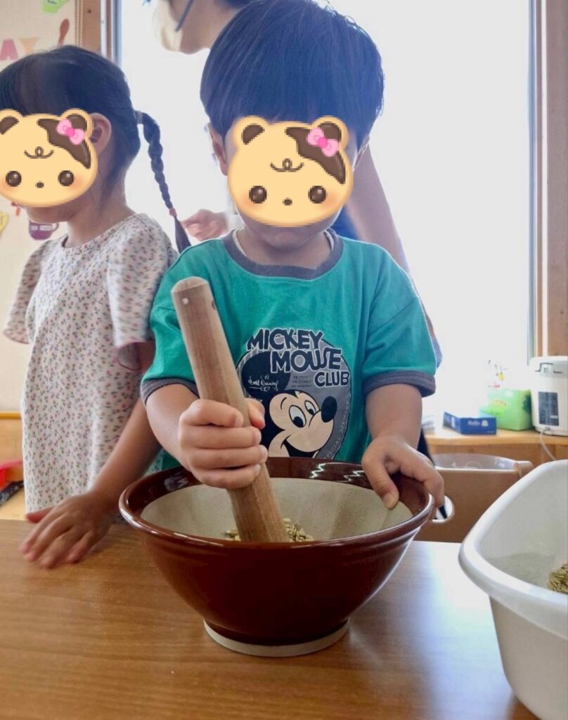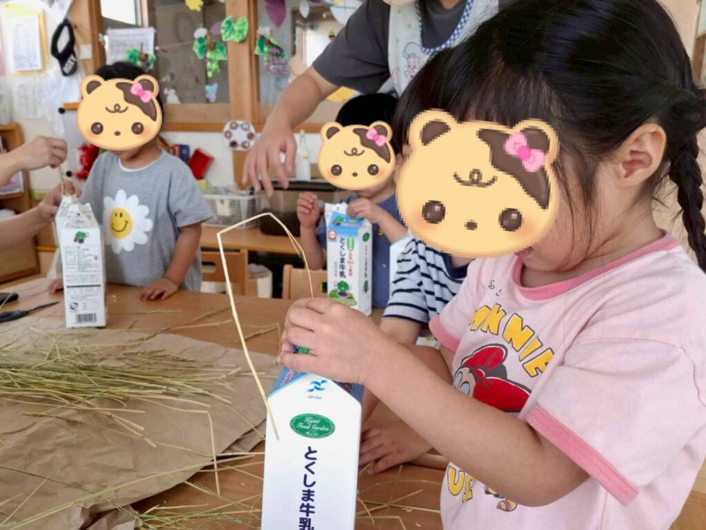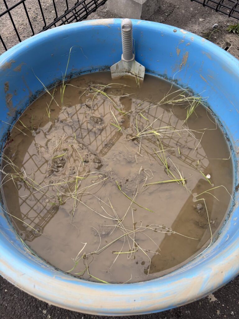 プランターに植えた苗が収穫の時期を迎え『稲刈り』を楽しみに待っていたSkyクラスの子どもたち🌾