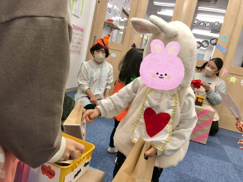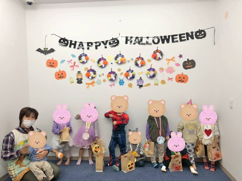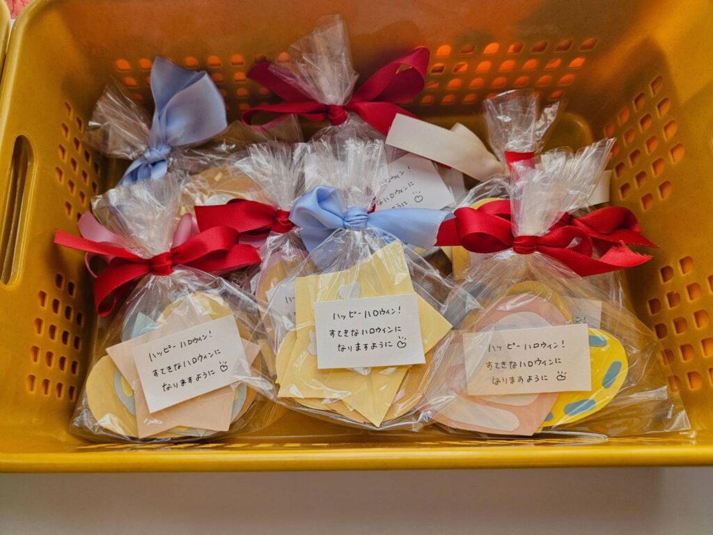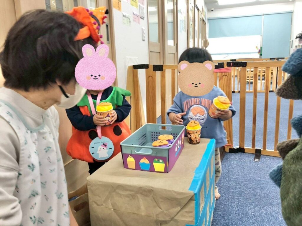 ハロウィンパーティーに参加しました😆給食の先生が作ってくれたクッキーを食べたり🍪クイズに答えたりおかいものごっこも楽しみました😊
