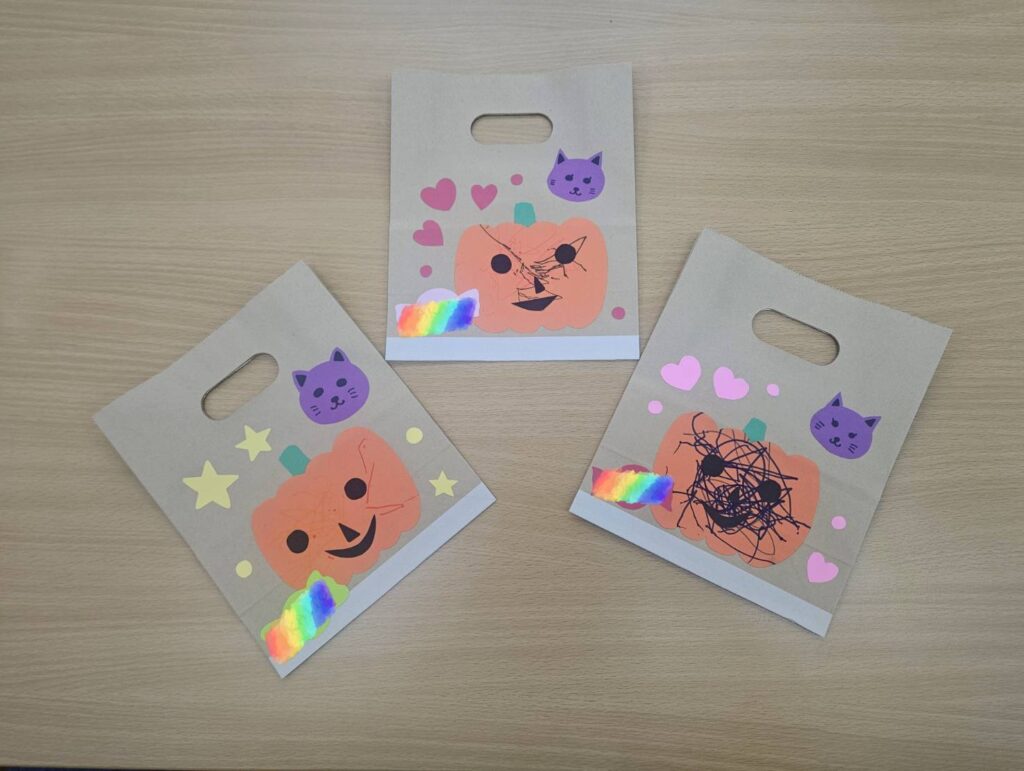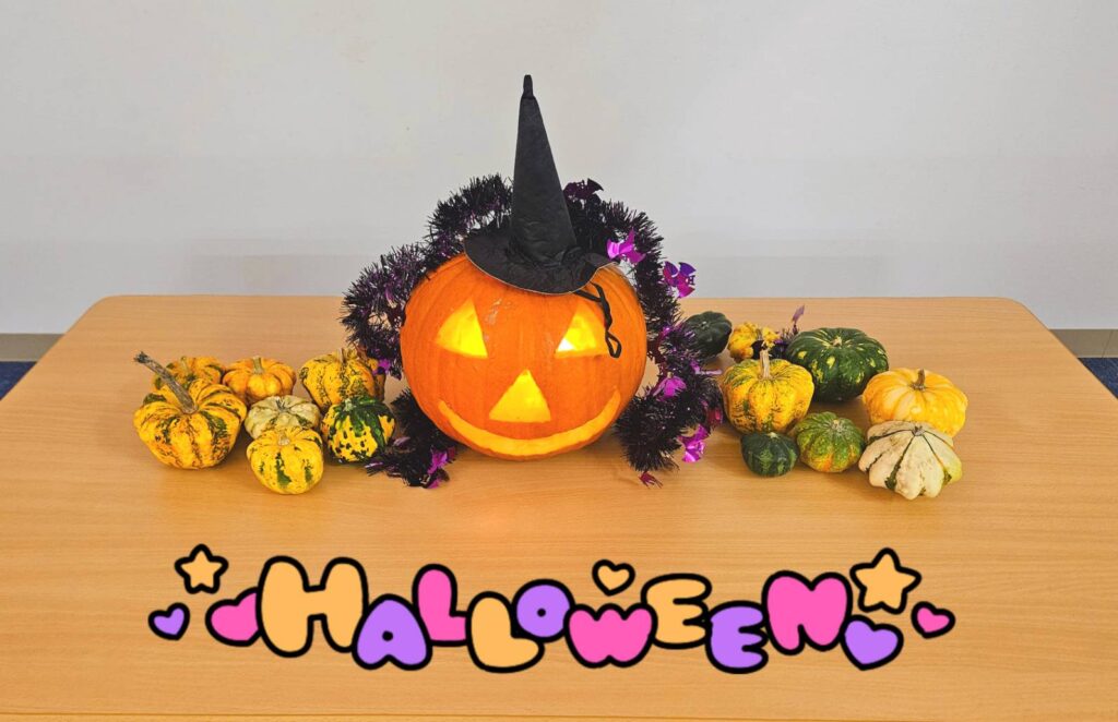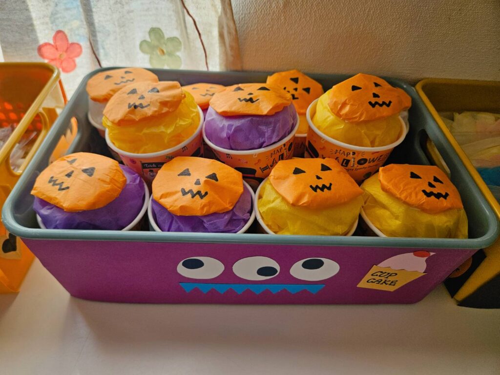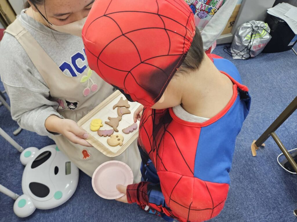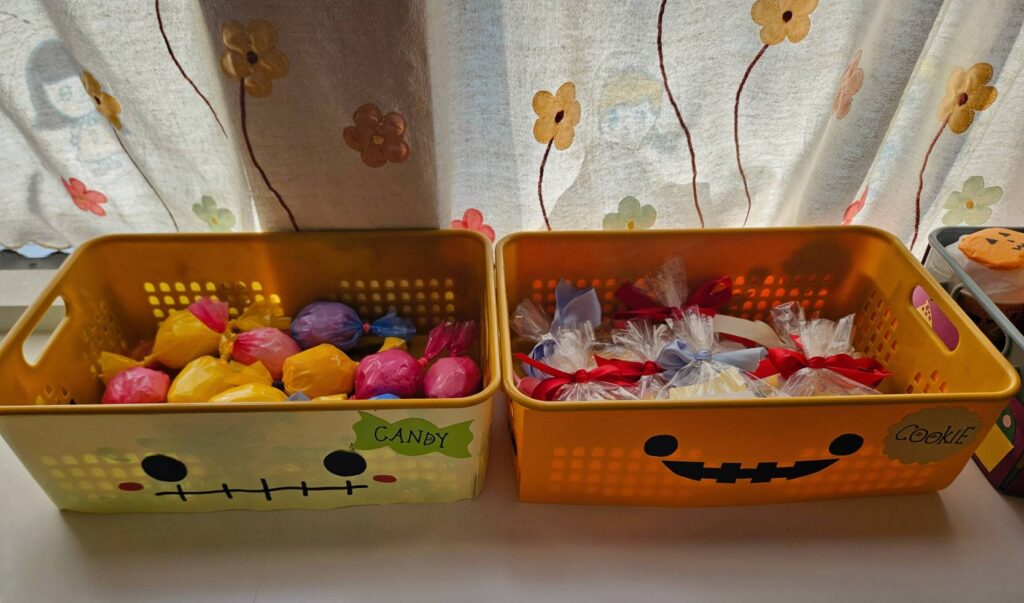 ハロウィンパーティーに参加しました😆給食の先生が作ってくれたクッキーを食べたり🍪クイズに答えたりおかいものごっこも楽しみました😊