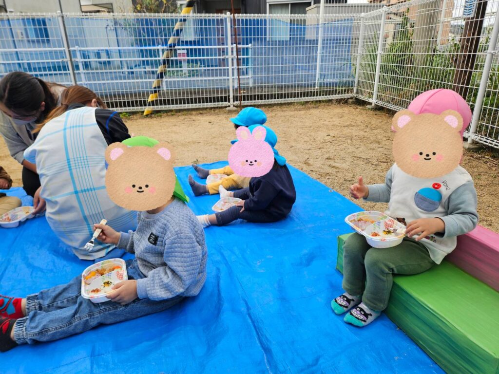 11/13/2025 / 最終更新日時 : 11/13/2025 ソーレ三軒屋園 ブログ担当者 三軒屋園 2025/11/11🍱ピクニックランチ🍱 過ごしやすいお天気の日が続いています✨園庭でピクニックランチを楽しみました😊お外で食べるランチは特別美味しかったです😋ごちそうさまでした🙏