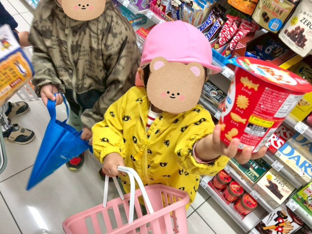 保育園近くのコンビニエンスストアにおかいもの体験に出かけました🤩(今年も快く受けてくださりありがとうございました🍀)今回は子ども用のレジかごを持って入店しました。たくさんあるお菓子の中から買いたい物を選んでいる姿はとっても嬉しそうでした💗楽しい体験となりました✨