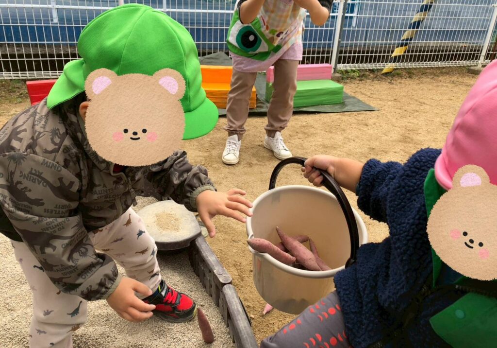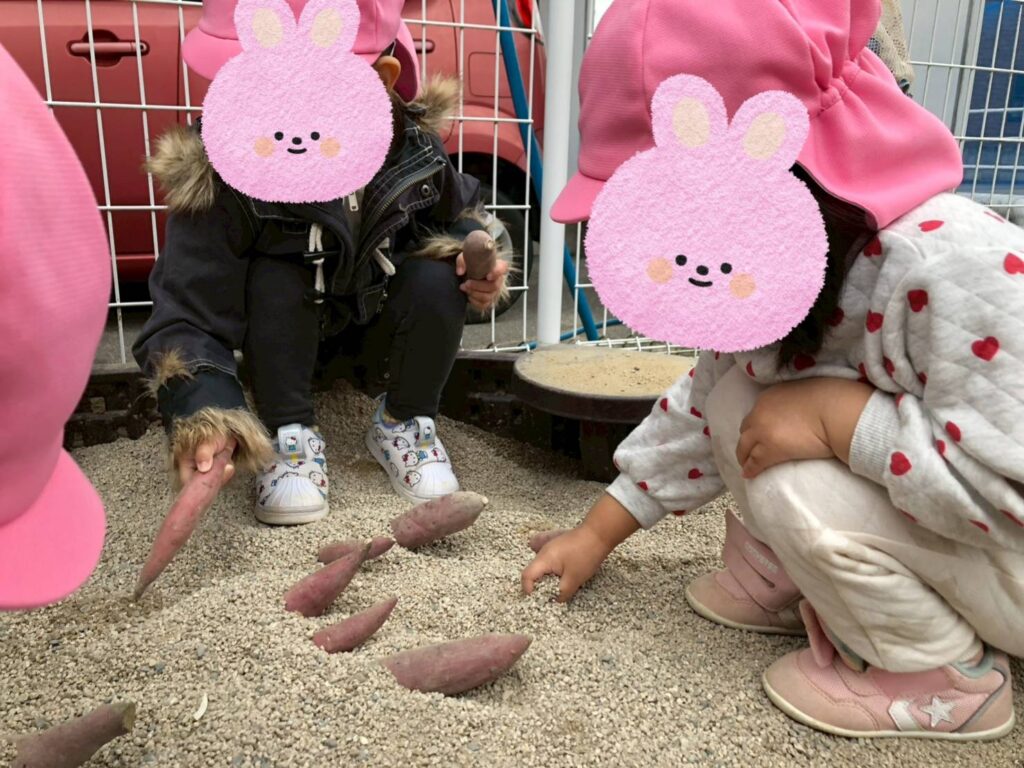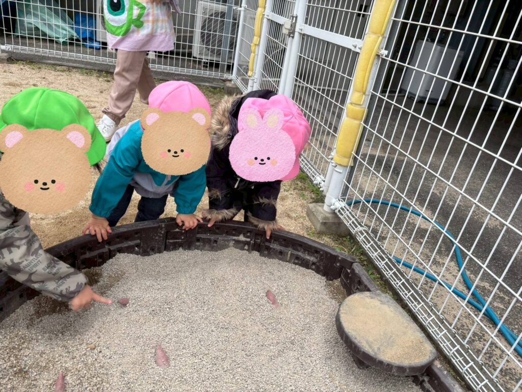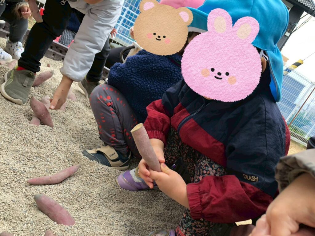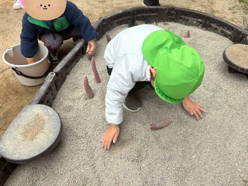 11/27/2025 / 最終更新日時 : 11/27/2025 ソーレ三軒屋園 ブログ担当者 三軒屋園 2025/11🍠お芋掘りごっこ🍠 新しいお砂が入ったので『鳴門金時のお芋』を真似てお芋掘りを楽しみました😊お砂の中からさつまいもを見つけると嬉しそうに見せてくれました😊