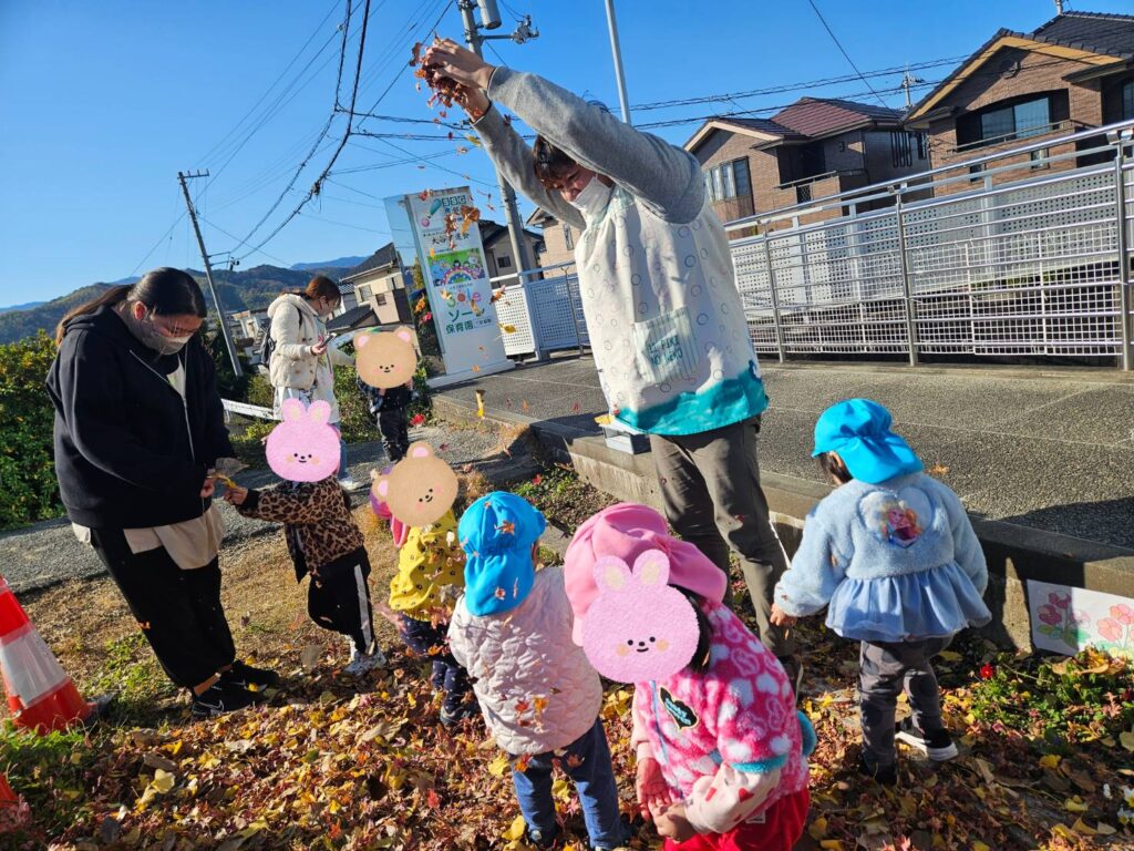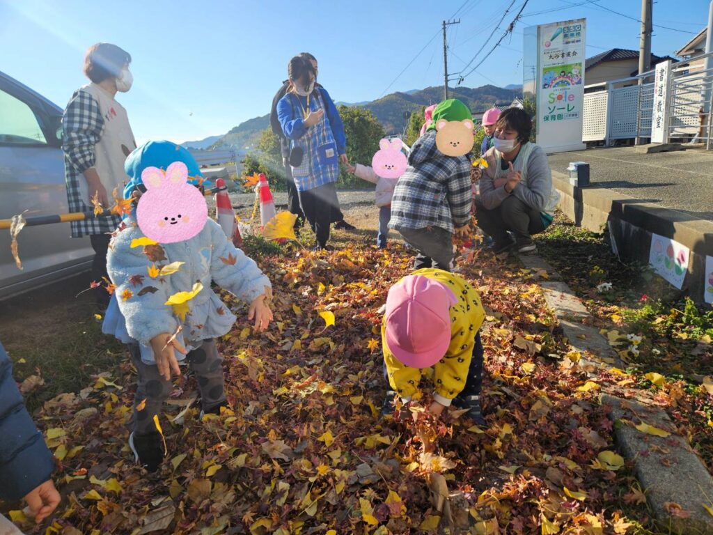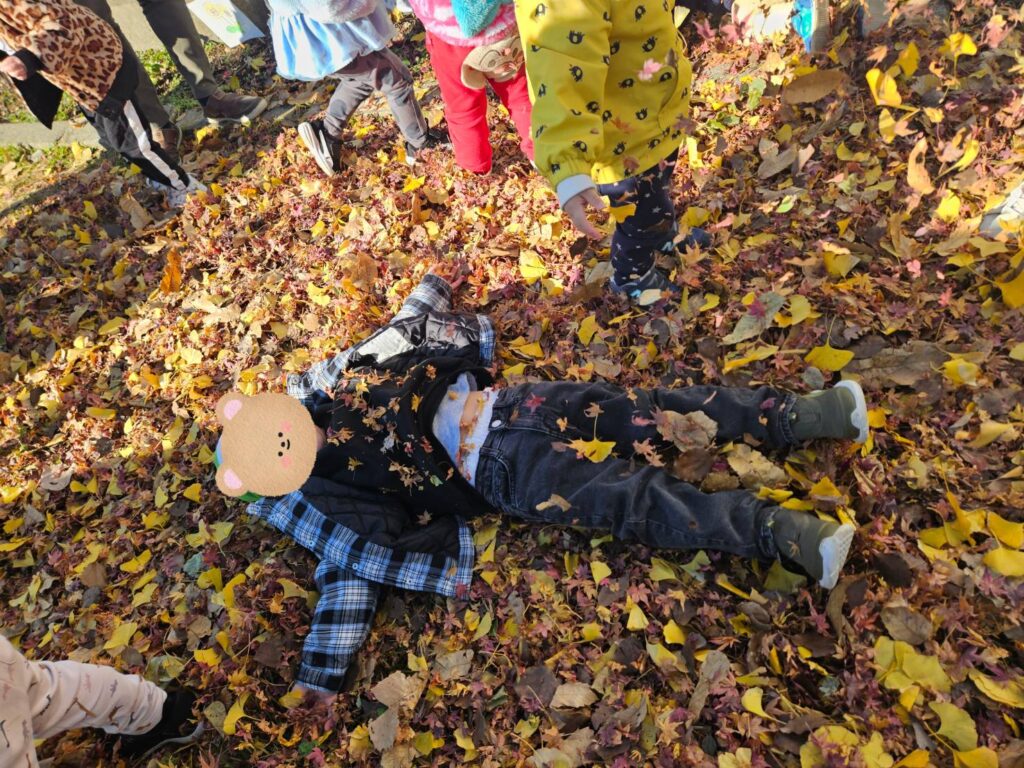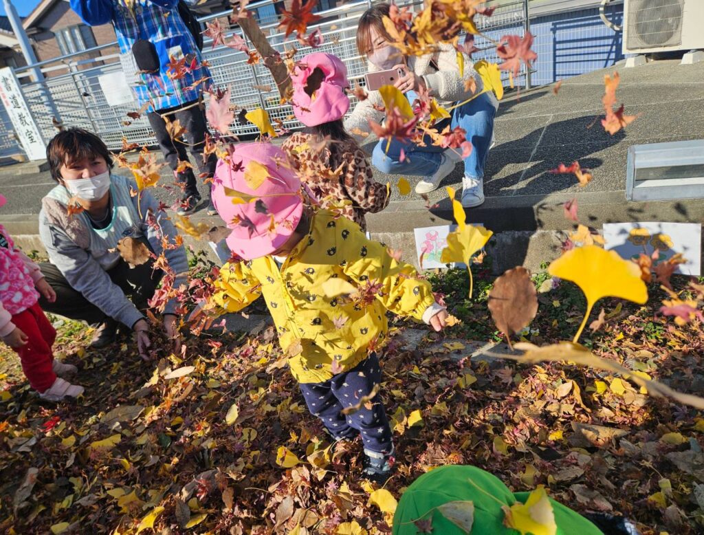12/16/2025 / 最終更新日時 : 12/16/2025 ソーレ三軒屋園 ブログ担当者 三軒屋園 2025/12🍂🍁落ち葉あそび🍁🍂 色とりどりの落ち葉を集めてあそびました😊「ガサガサ♪バリバリ♬」と乾いた葉っぱの割れる音やフワフワした感触を楽しみました😊落ち葉のお布団はとっても気持ちよさそうでした🍁