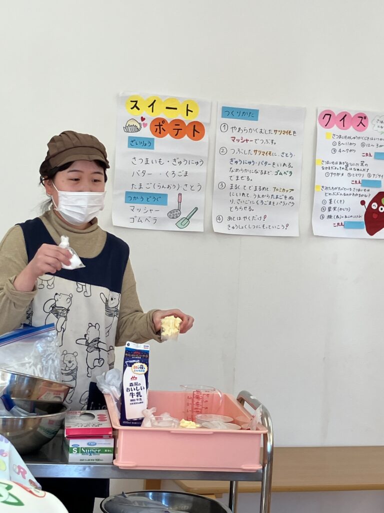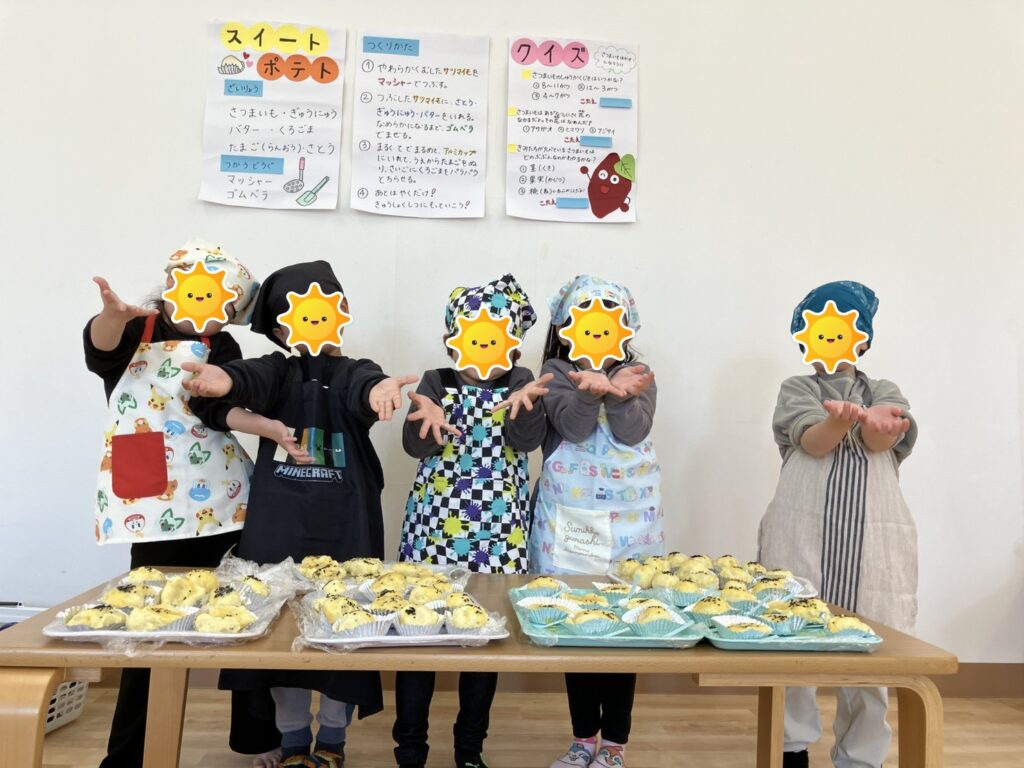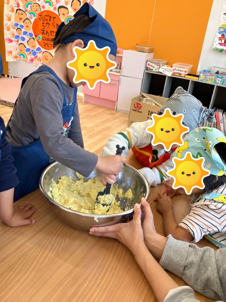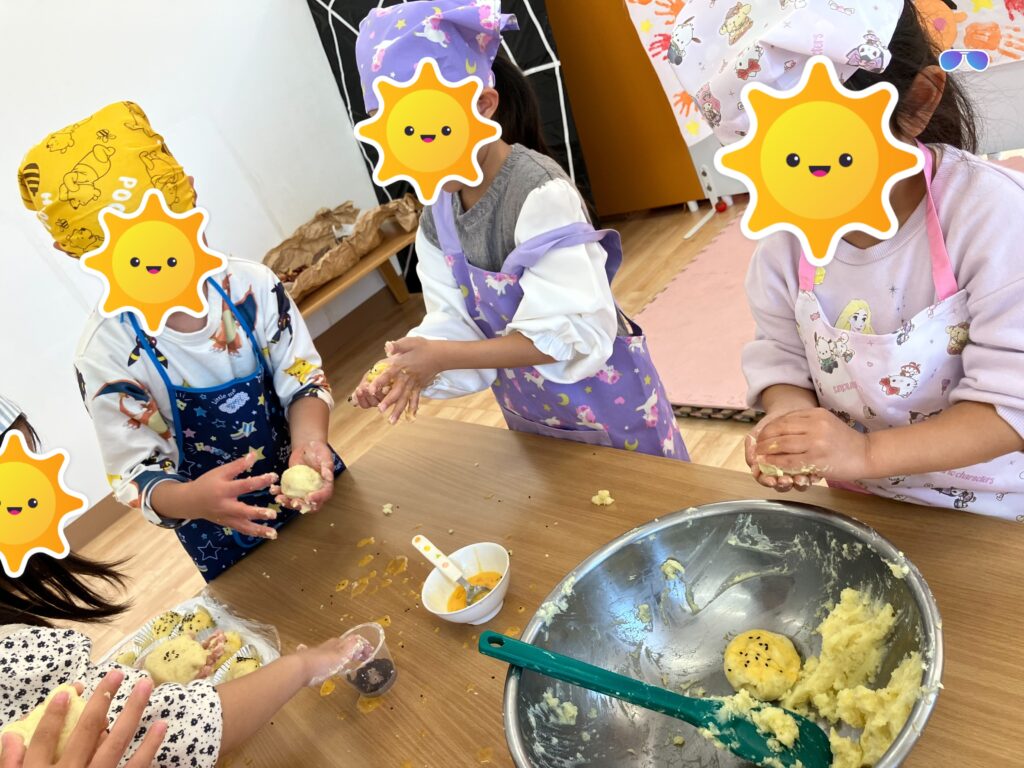🍠クッキング『スイートポテト』🍠 2025年11月26日 最終更新日時 : 2025年11月26日 ソーレ保育園 蔵本園 ブログ担当 11/20 さくらくみ(4.5歳児)のクッキングがありました。はじめにスイートポテトの作り方やおいものクイズがあり真剣な表情でお話を聞いていました。グループに分かれつぶしたおいもに砂糖・バター・牛乳を入れてかわるがわる混ぜるとなめらかに・・・!少しずつ手に取りくるくると丸める作業!さいごに卵をぬり黒ゴマをかけて完成! 3時のおやつに手作りのスイートポテトをおいしくいただきました。 \ 最新情報をチェック /